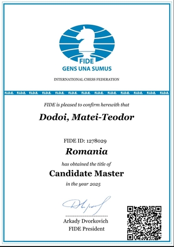 În iunie 2025, Matei-Teodor Dodoi a atins pragul de 2200 ELO, performanță care îi aduce titlul de Candidat de Maestru.